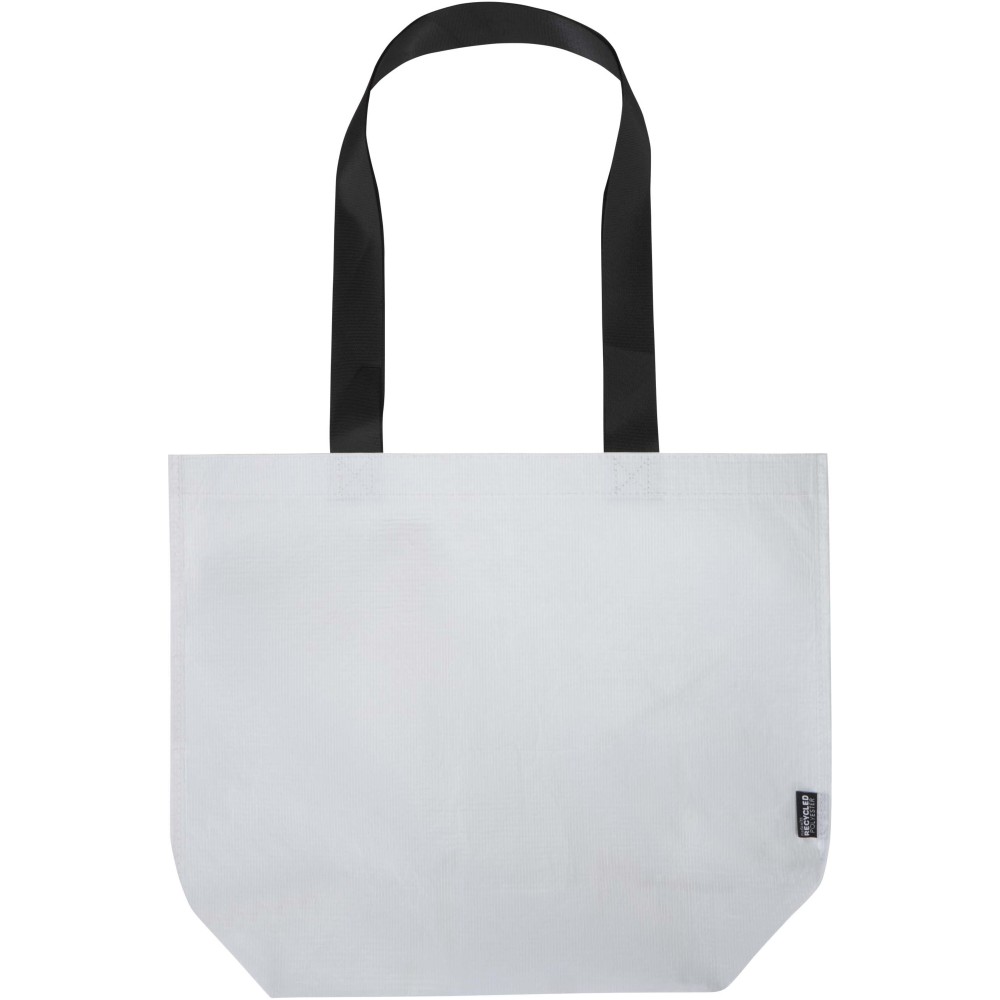 Duplán laminált aljú bevásárlótáska 150 g/m2 súlyú, GRS tanúsítvánnyal rendelkező, újrahasznosított RPET anyagból készül. A dupla laminálásnak köszönhetően a táska fokozott tartóssággal és vízlepergető tulajdonságokkal rendelkezik, így megbízható megoldást nyújt a mindennapi használat során. A termék tágas, nyitott főrekesszel, megerősített hordfülekkel és extra kapacitást biztosító széles alsó résszel rendelkezik. A 18 literes űrtartalmú táska teherbírása 10 kg, így esztétikus és praktikus választás bevásárláshoz, szakvásárokra vagy reprezentatív céges eseményekre. Az újrahasznosított alapanyag révén kiválóan alkalmas öko-szemléletű emblémázott ajándéknak.