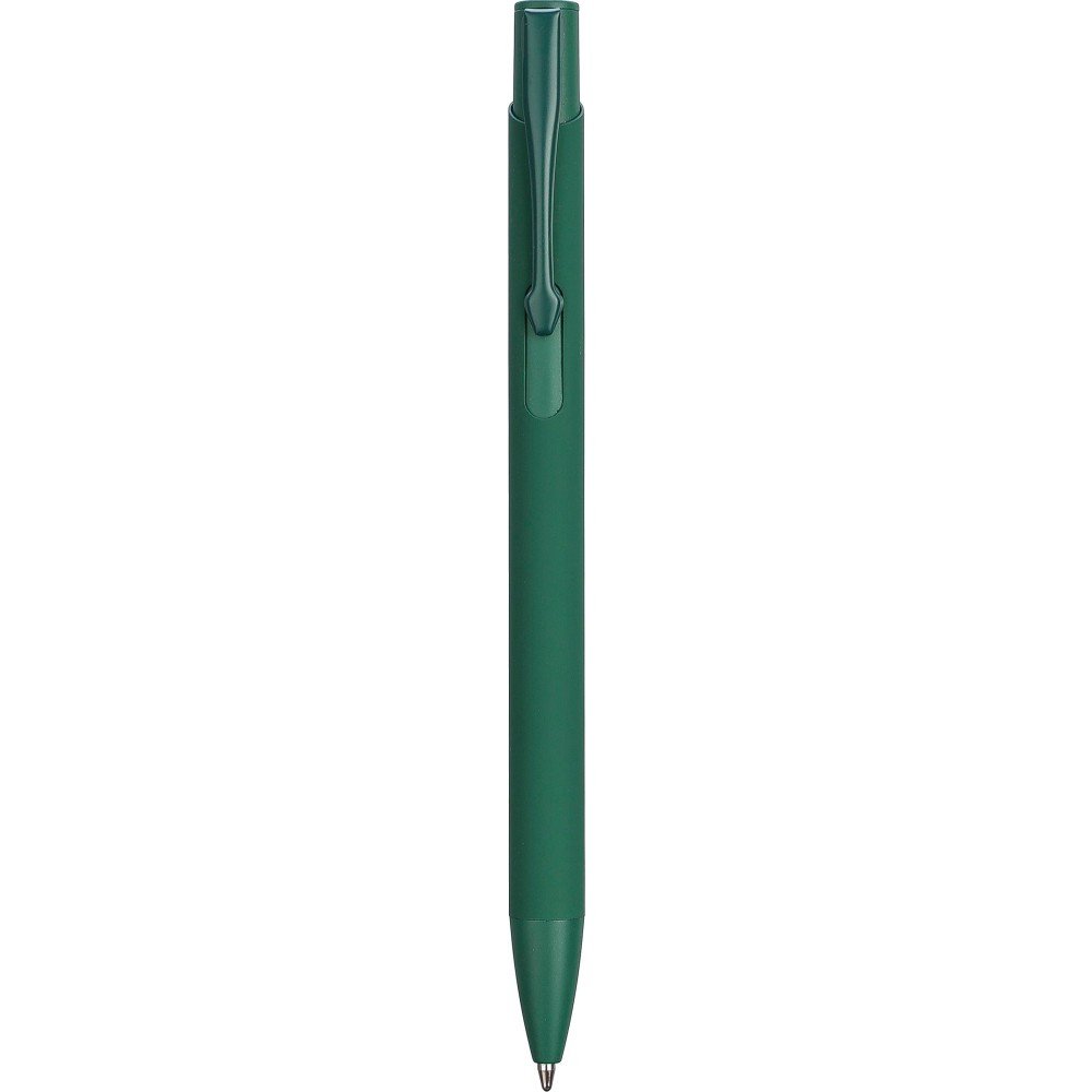 Újrahasznosított alumíniumból készült golyóstoll gumírozott bevonattal a tolltesten. A klipsz, a tollhegy és a nyomógomb azonos színű. A klipsz fémből, a tollhegy műanyagból készült. Kb. 800 méter íráshossz. Gravírozott újrahasznosított alumíniumra utaló logóval. Kék tollbetéttel.