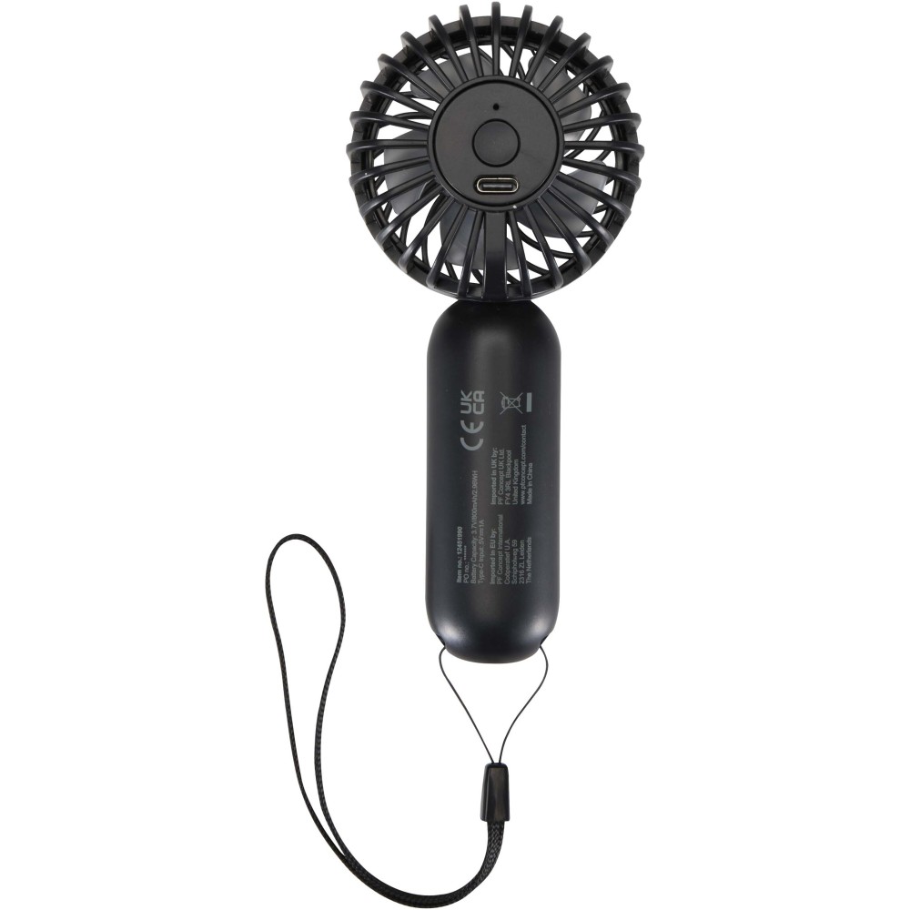 Ez az újrahasznosított műanyagból készült, hordozható mini ventilátor kompakt, utazásbarát kialakításával és három választható sebességfokozatával ideális választás kültéri rendezvényekhez, klubokba vagy fesztiválokhoz. A termék gyors és kényelmes hűtést biztosít útközben, így praktikus nyári kiegészítő a mindennapi használathoz vagy utazásokhoz. A ventilátor üzemideje alacsony fokozaton 3 óra, közepes fokozaton 2 óra, magas fokozaton pedig 1,2 óra. Az akkumulátor a mellékelt USB-A - USB-C töltőkábellel tölthető fel, a teljes feltöltési idő 0-ról 100%-ra 2 órát vesz igénybe.