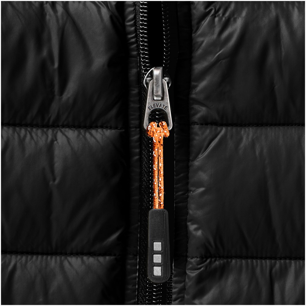 Normál szabásvonal. Pehelybiztos anyag. Cipzáros mell- és oldalzsebek. Szél elleni állvédő betét a nyaknál. Gumis szegély az aljon és a karöltőben. Vízlepergető, lélegző és szélálló. Hátul fényvisszaverő logónyomat . Könnyen megfogható cipzárhúzókák . A RedDot Design Díj nyertes Scotia dzsekivel megegyező minőség. 100% nylon, szőtt anyag, dupla vízlepergető bevonat, 20D. 80% pehely és 20% toll töltet.