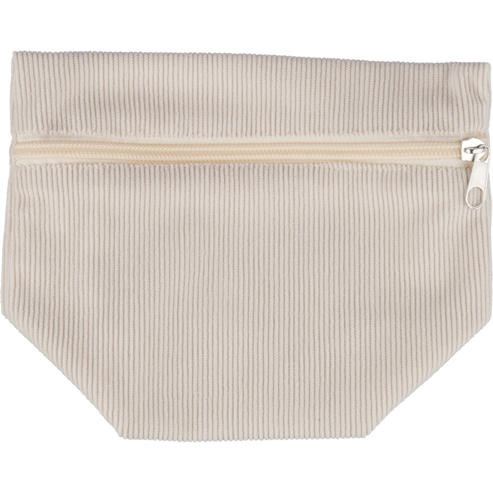 Kordbársony anyagból készült cipzáras kozmetikai táska egy fő rekesszel és biztonságos cipzáras zárással.