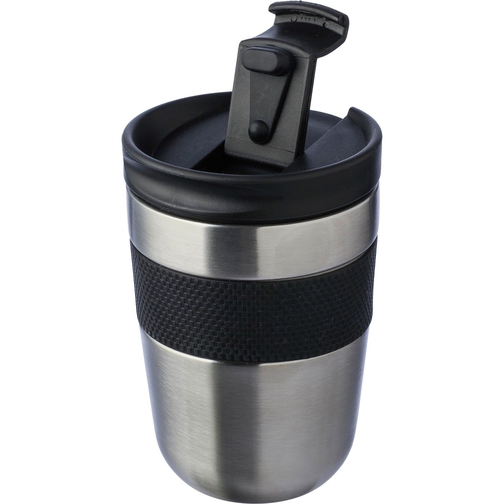 Duplafalú bögre PP fedéllel és szilikon fogóval. A tartalmát 4 órán át melegen és 6 órán át hidegen tartja. A belső rész 304-es rozsdamentes acélból, a külső rész 201-es rozsdamentes acélból készült. Egyenként barna kartondobozba csomagolva. Űrtartalom: 300 ml.