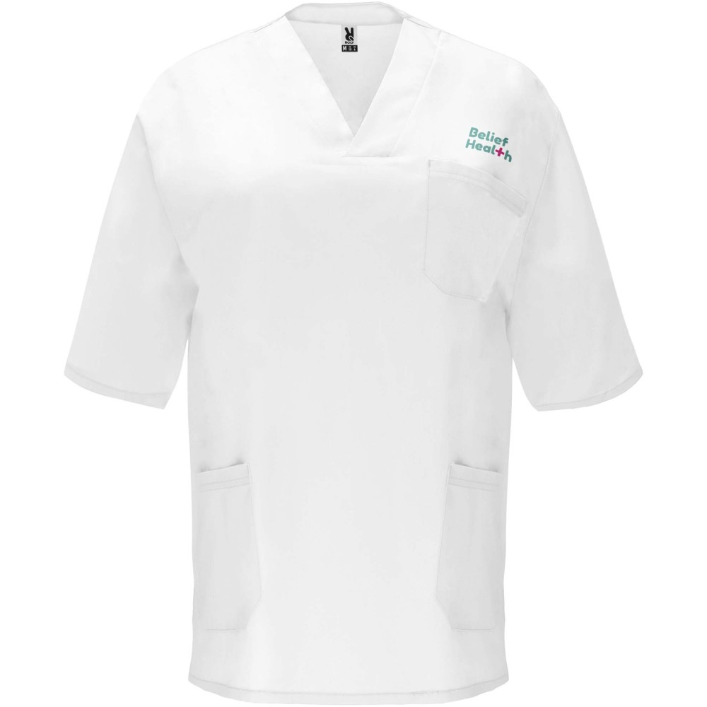 Rövid ujjú, unisex munkaruházati felső. Keresztirányú V-nyakkivágással, egy mellzsebbel és két oldalsó zsebbel rendelkezik. Az alsó szegélyen elhelyezett oldalsó hasítékok biztosítják a kényelmes viseletet.
