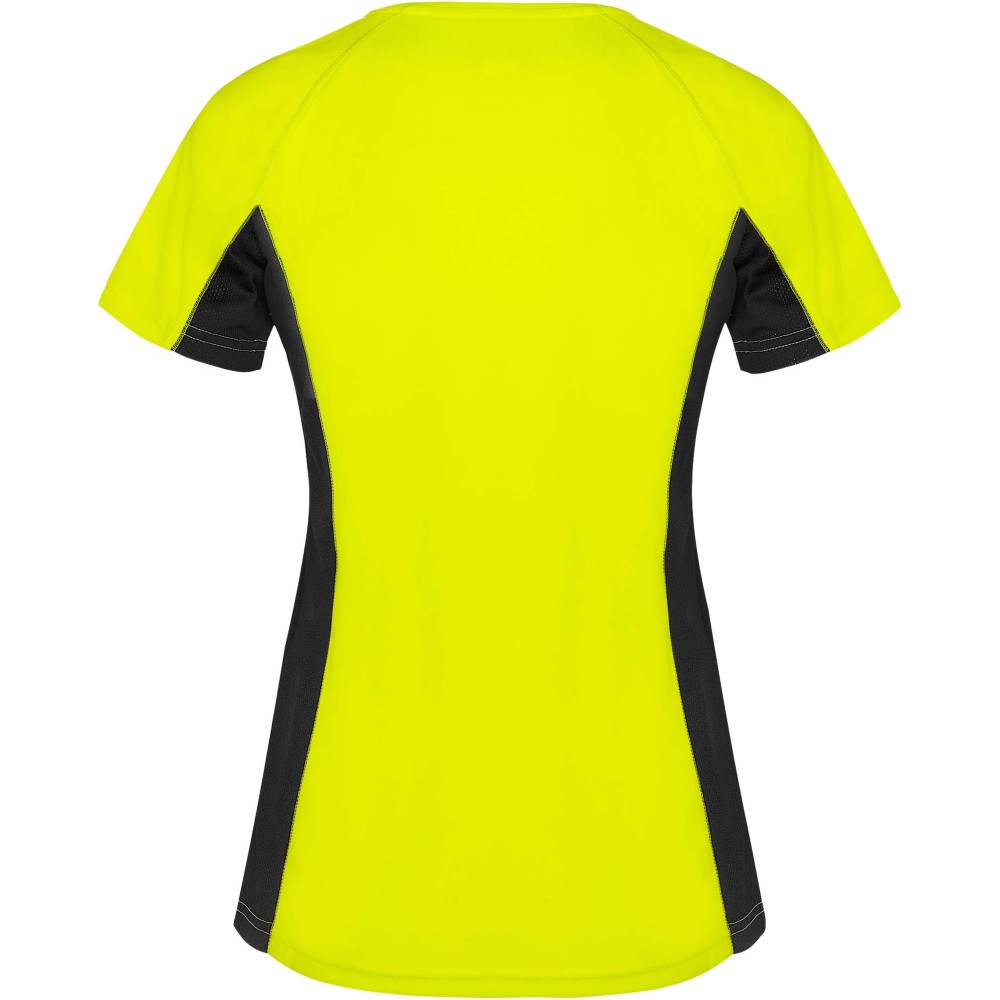 Roly Shanghai rövid ujjú női sportpóló, Fluor Yellow, Black