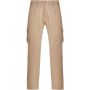 Hosszú szárú munkásnadrág, amely kényelmes és strapabíró anyagból készült. A nadrág hátul gumírozott derékkal rendelkezik az állíthatóság érdekében. Kontrasztos színű övbújtatókkal, zsebfedőkkel, hajtásokkal és szegélyekkel díszített. A praktikus kialakítást két elülső zseb, két tépőzáras fedéllel ellátott, hajtogatott oldalsó zseb, valamint két szintén tépőzáras fedéllel záródó hátsó zseb biztosítja.