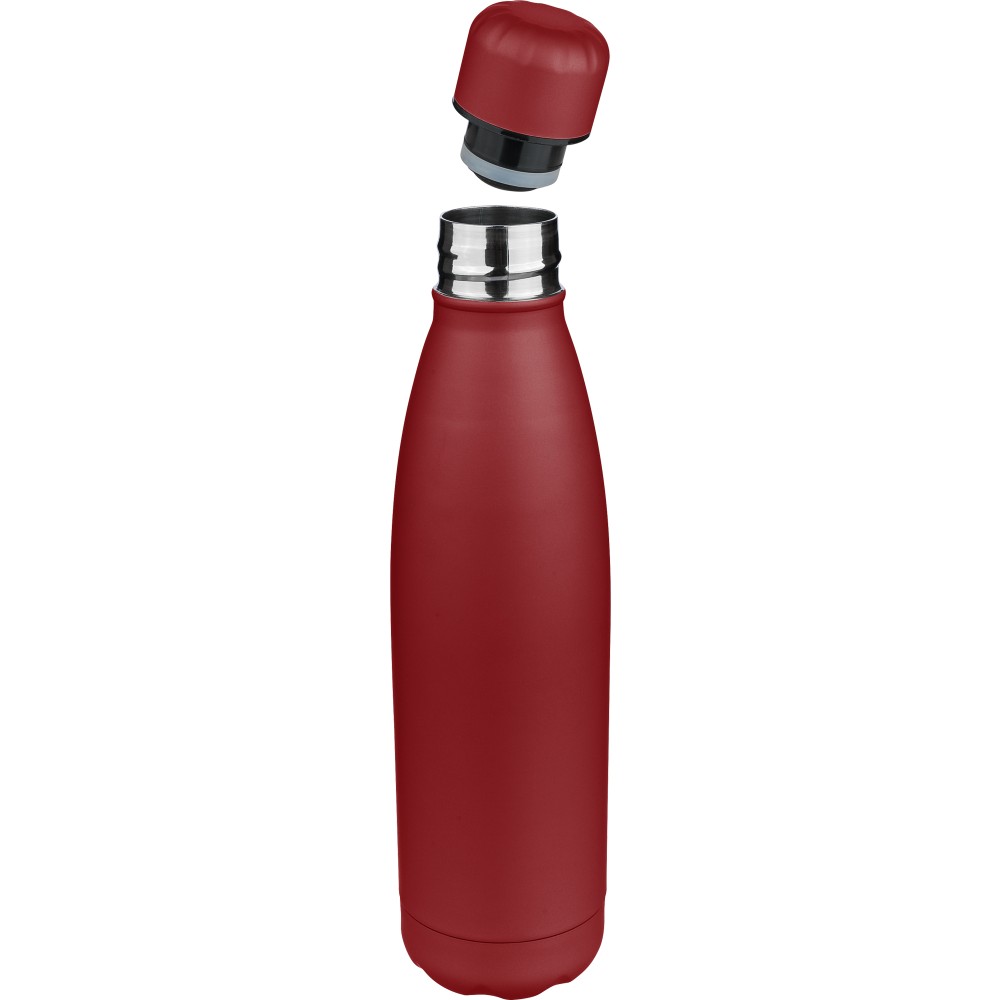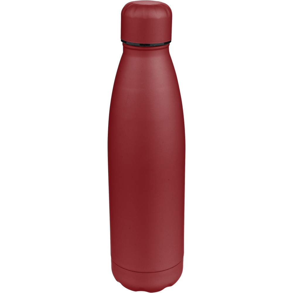 Újrahasznosított rozsdamentes acél ivópalack 500 ml-es űrtartalommal. Duplafalú szigetelés, amely akár 12 órán át melegen vagy hidegen tartja az italokat. A 304-es rozsdamentes acél belső kiváló tartósságot, rozsdaállóságot és biztonságos élelmiszer-érintkezést garantál. Selymes matt színű felülettel. A csavaros fedél és az aljzat színben egyezik a tiszta, egységes megjelenés érdekében. A palack elülső részén gravírozott újrahasznosított logó található. Egyenként, barna kartondobozba csomagolva.