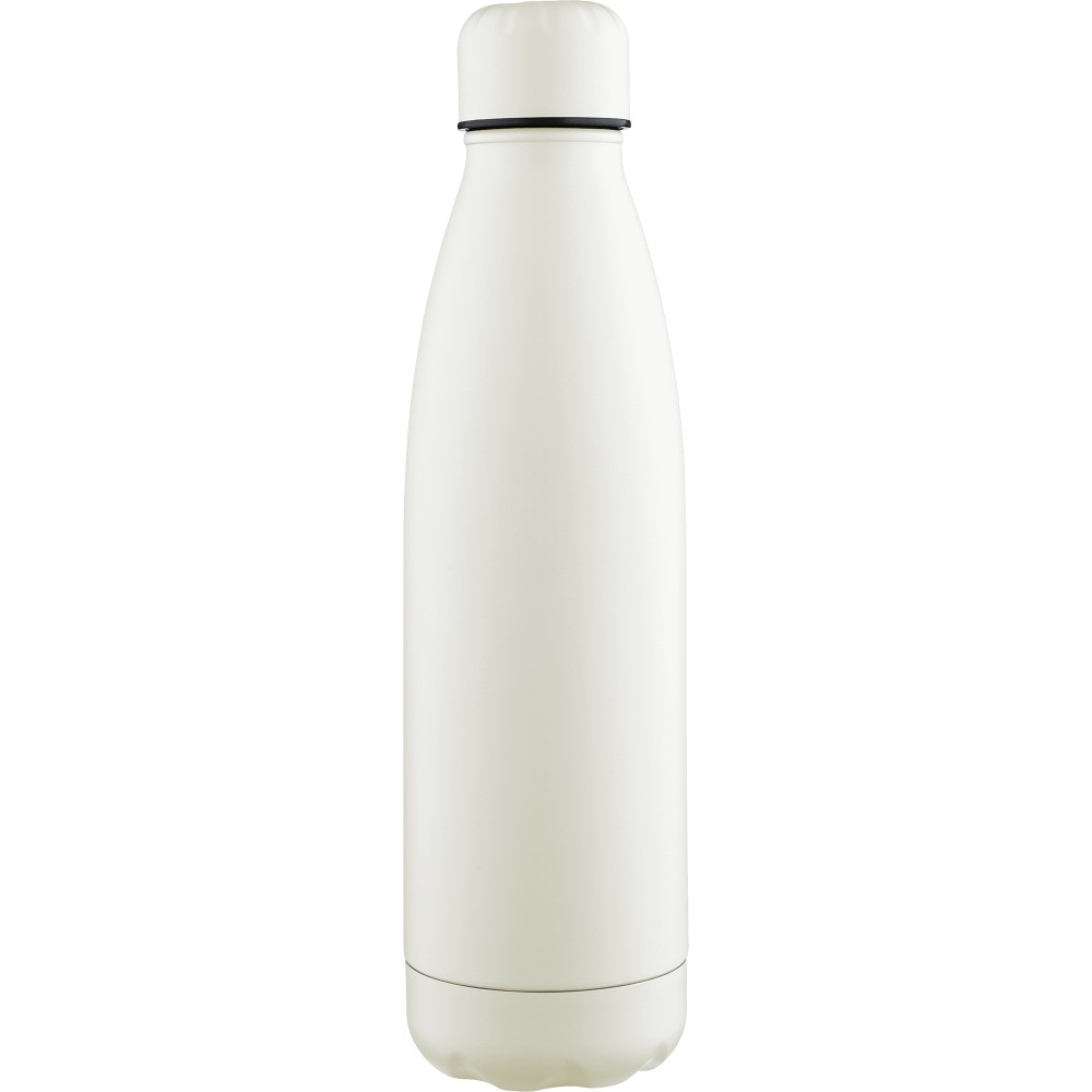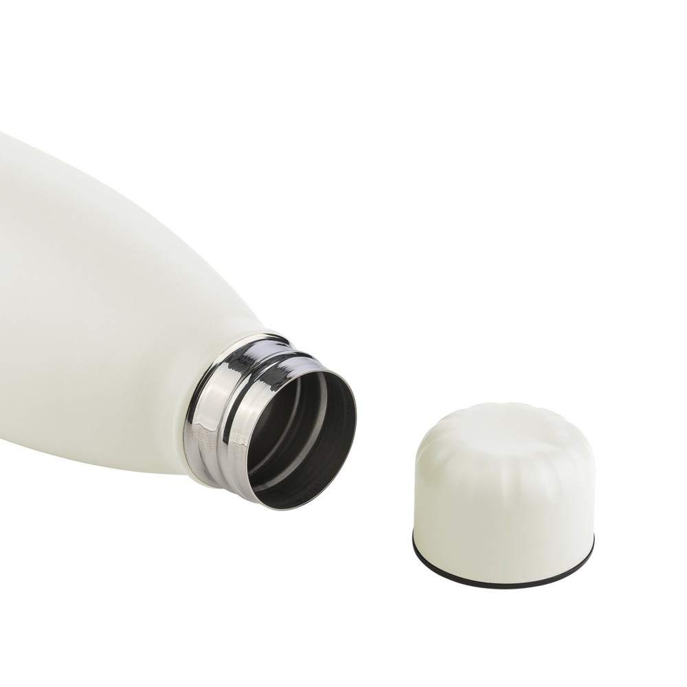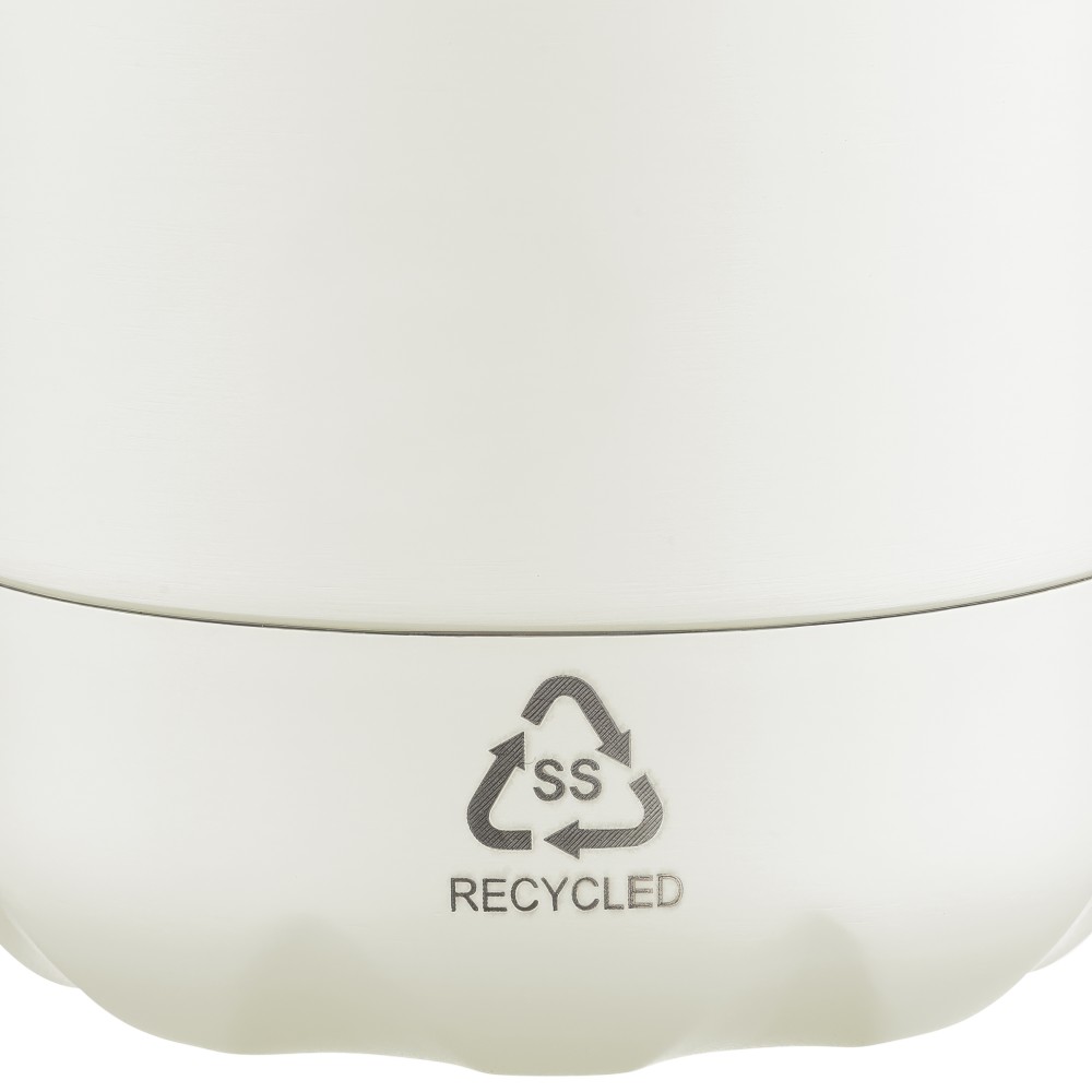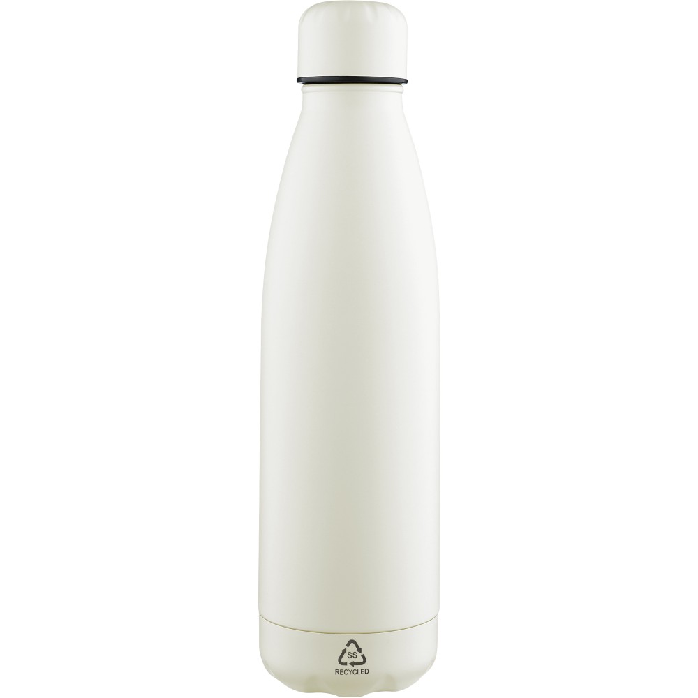 Újrahasznosított rozsdamentes acél, egyfalú ivópalack 700 ml-es űrtartalommal. Hideg italok tárolására alkalmas, és 3-4 órán át hűvösen tartja azokat. A 304-es rozsdamentes acél belső kiváló tartósságot, rozsdaállóságot és biztonságos élelmiszer-érintkezést garantál. Matt színű felülettel, valamint színben illeszkedő csavaros fedéllel és aljjal. Az elülső oldalon gravírozott újrahasznosított logó található. Egyenként barna kartondobozba csomagolva.